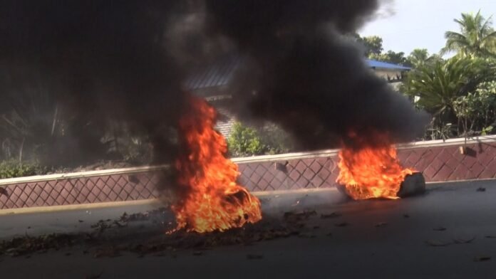La jornada estuvo marcada por la quema de neumáticos en las inmediaciones del campus y el bloqueo parcial de vías cercanas, generando una densa humareda y complicaciones en el tránsito.